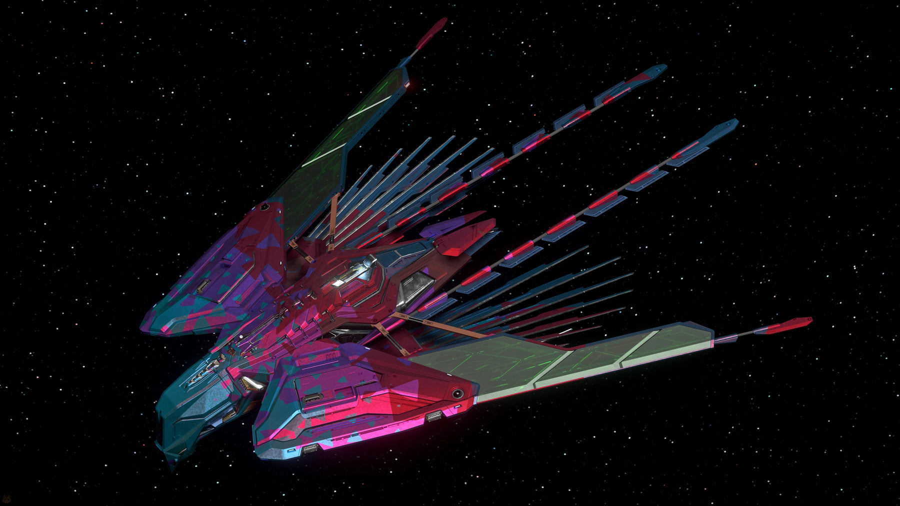 The Harmony paint scheme is meant to showcase Humanity’s peaceful relationship with aliens with a semi-pearlescent blue main coat marked with organic reflective red to suggest the coming together of disparate species and cultures. Now Esperia Talon owners can celebrate the UEE’s intentions of working toward a peaceful galaxy.