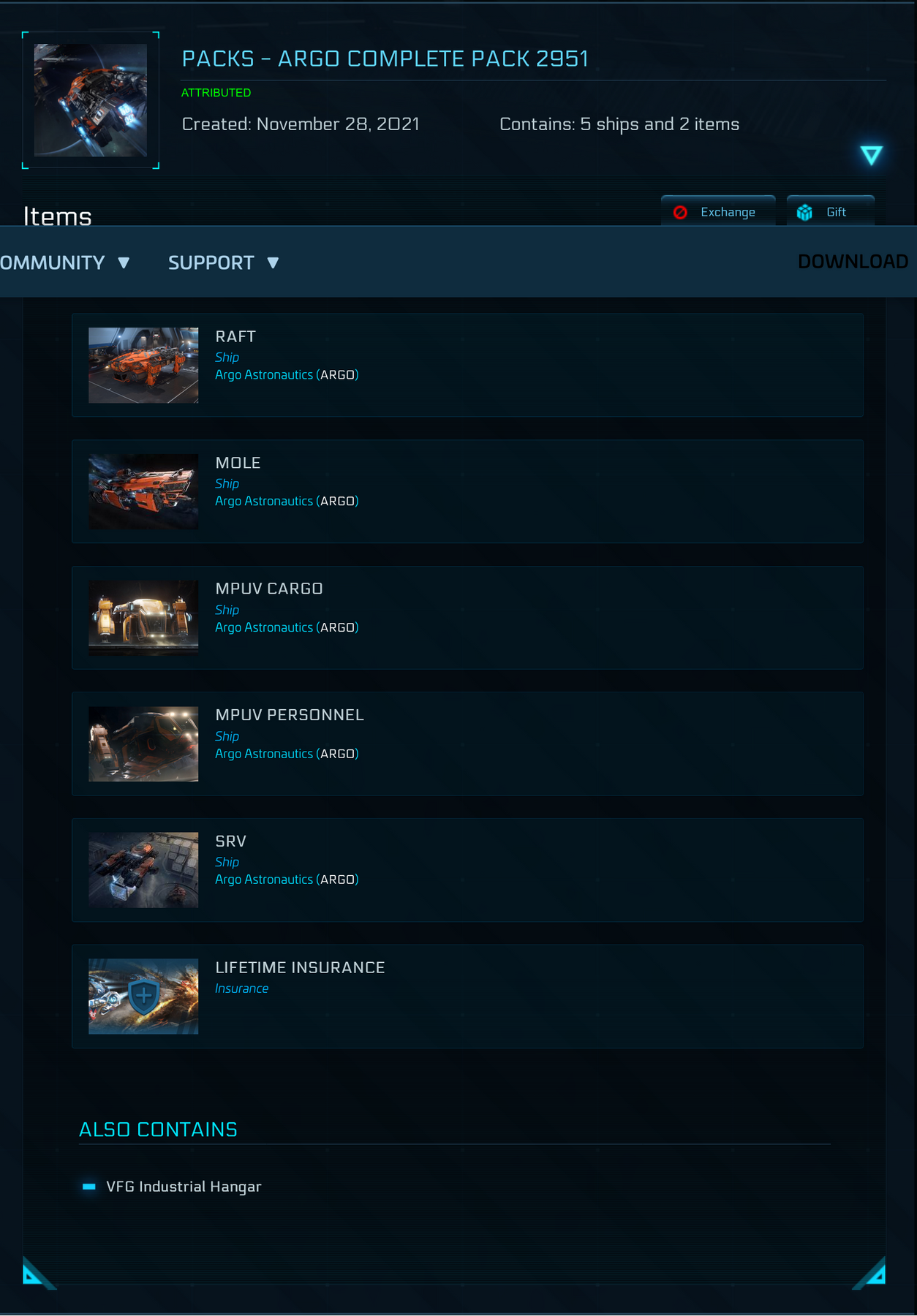 Experience to fly all the iconic Argo ships with the Complete Pack, including the new RAFT, the capable Mole, and the legendary MPUV.